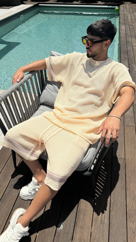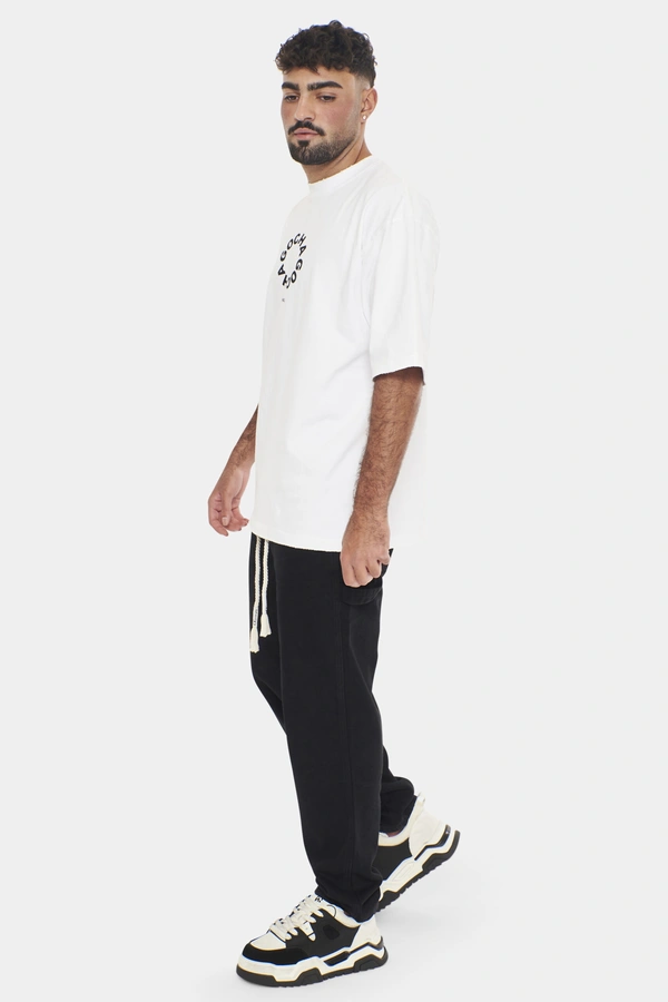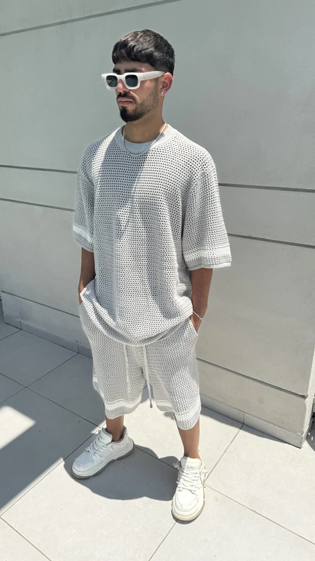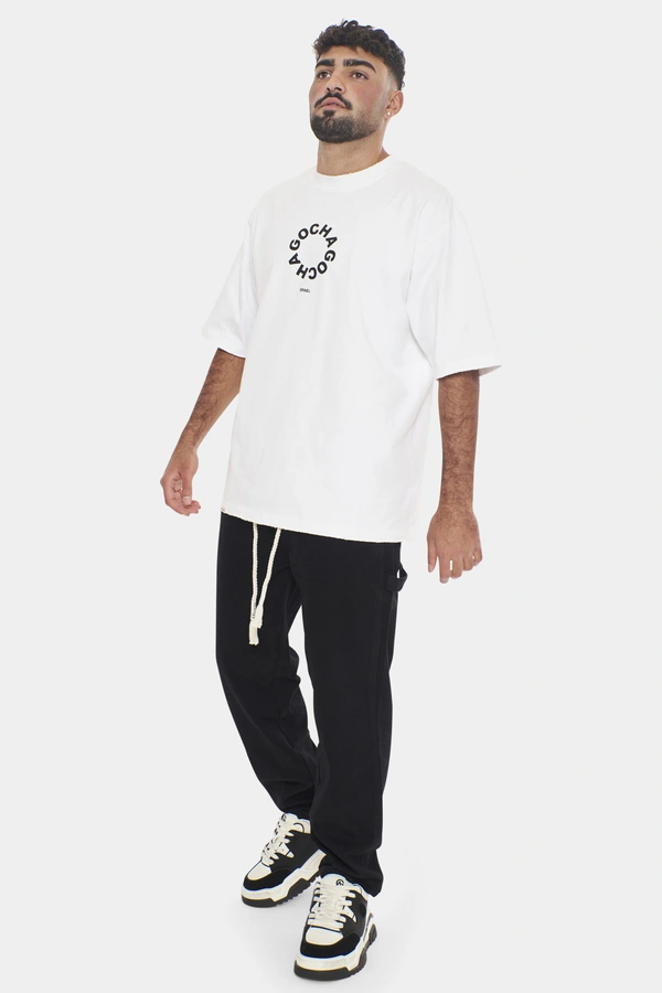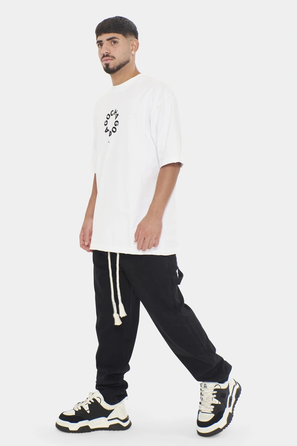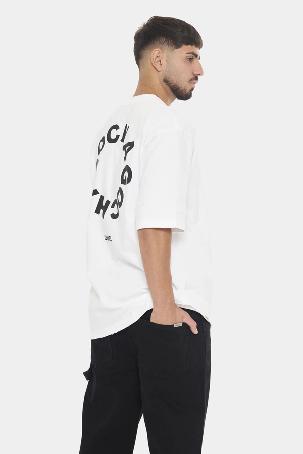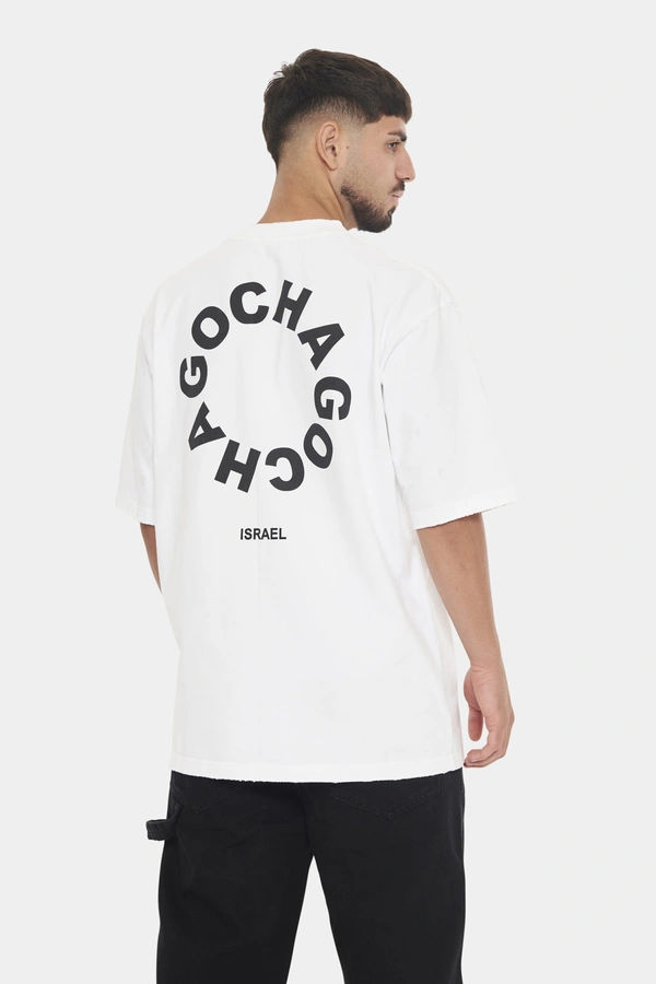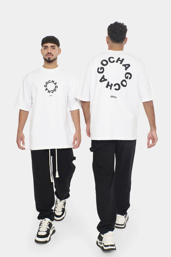חולצה קצרה אוברסייז לבנה לגבר מבית GOCHA IL. מראה טרנדי ונוח, מושלמת ללוק יומיומי.