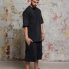 הסט מציג גזרה רחבה ומשוחררת (Oversize) שיוצרת צללית מודרנית ונינוחה, המתאימה למבני גוף שונים ומעניקה חופש תנועה מלא. הצבע השחור הנצחי מאפשר ורסטיליות מלאה – הוא משדר יוקרה שקטה ומתאים לכל שילוב.