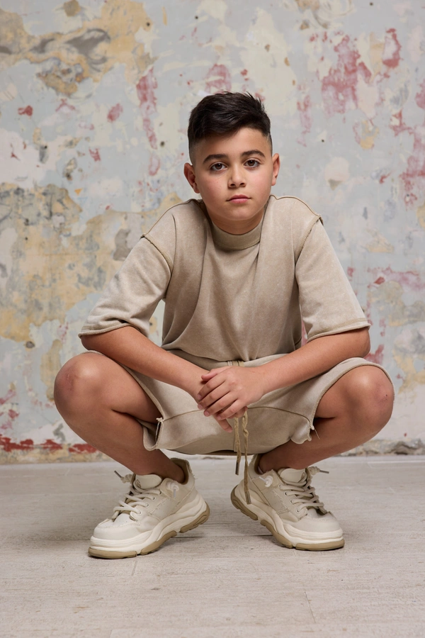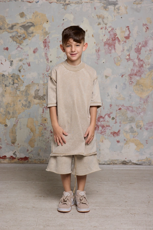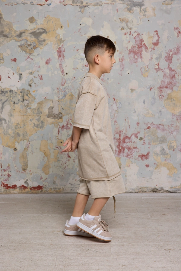 מכנסי ברמודה אוברסייז BUGI סט קידס BEIGE הם פריט חובה בקולקציית הילדים והנוער של GOCHA, המיועדים למי שמבין שסטייל אמיתי מתחיל בנוחות ואיכות.