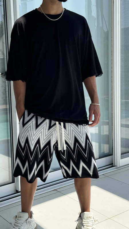 GOCHA מציגה את ברמודת הסריג זיגיזיג BLACK, פריט חובה בארון הבגדים של כל גבר שמחפש סטייל ונוחות. ברמודה זו משלבת עיצוב זיג-זג מודרני בגווני שחור, לבן ואפור, עם גזרת סריג רכה ונעימה. מושלמת לימי הקיץ, בין אם אתה יוצא לבילוי או נח בבית. ב- GOCHA, אנו מתמחים בהלבשת גברים ומציעים קולקציות טרנדיות המתאימות לכל גבר. השלם את המראה שלך עם מגוון אביזרים מהקולקציה שלנו.