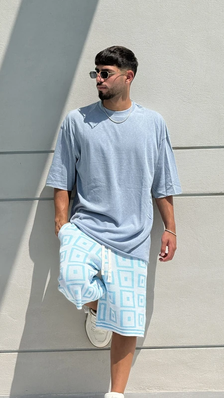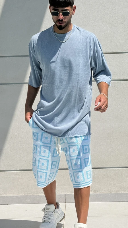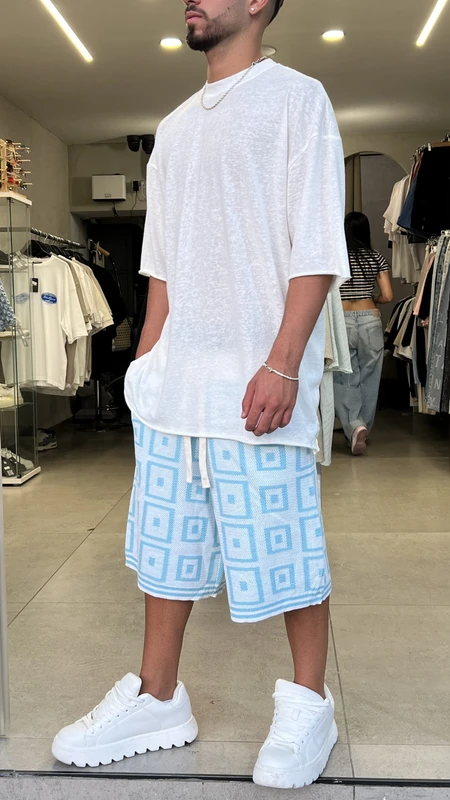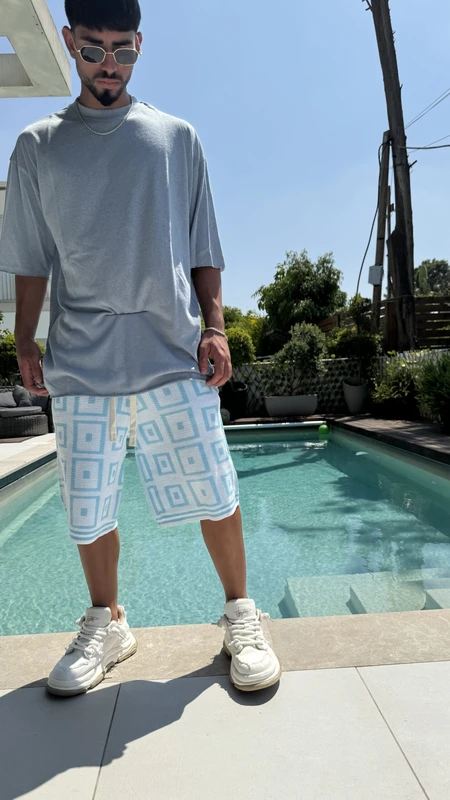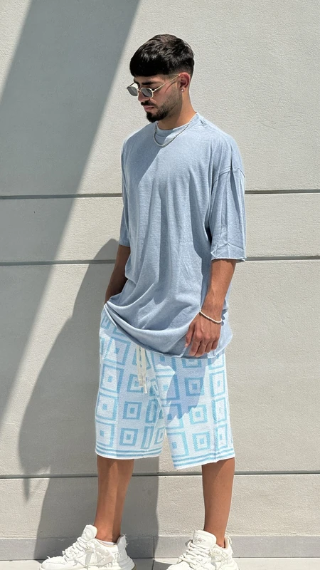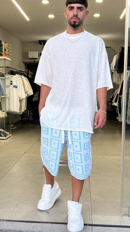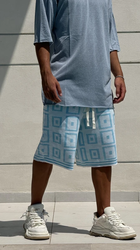 ברמודה סריג קוביות BLUE – סט קיץ מושלם לגבר! גזרת ברמודה נוחה וטרנדית עם דוגמת קוביות מרהיבה בגוון כחול משגע. הבחירה המושלמת לימי הקיץ החמים.
