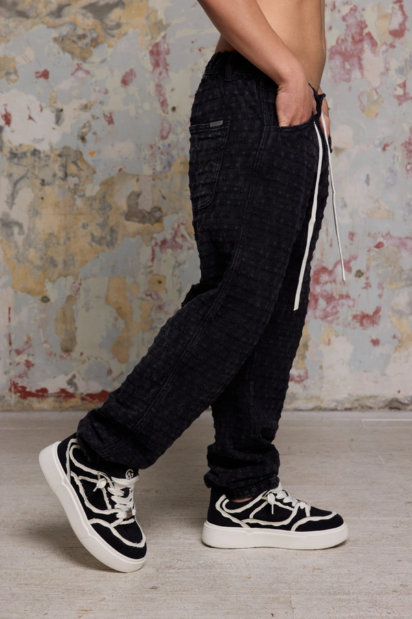 הגינס מעוצב בגזרת אוברסייז רחבה ומשוחררת, שהיא כיום הטרנד המוביל בסצנת הסטריט-וור (Streetwear) העולמית. הוא מתאים במיוחד למי שמעדיף מראה נינוח ונושם, אך עדיין רוצה להיראות מטופח ומסוגנן. הצבע השחור העמוק שלו הופך אותו לפריט ורסטילי במיוחד שמשדרג כל הופעה ברגע ומתאים לכל עונות השנה.