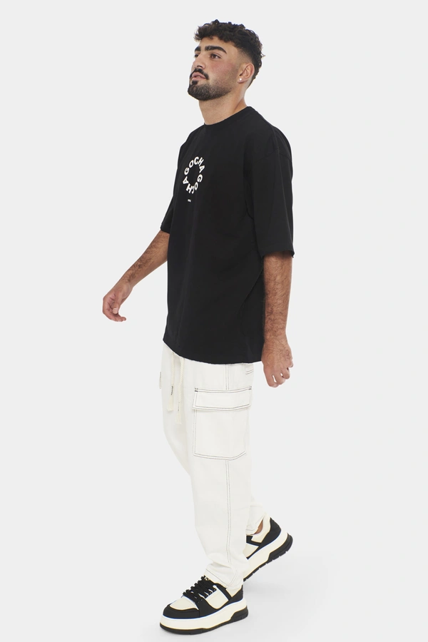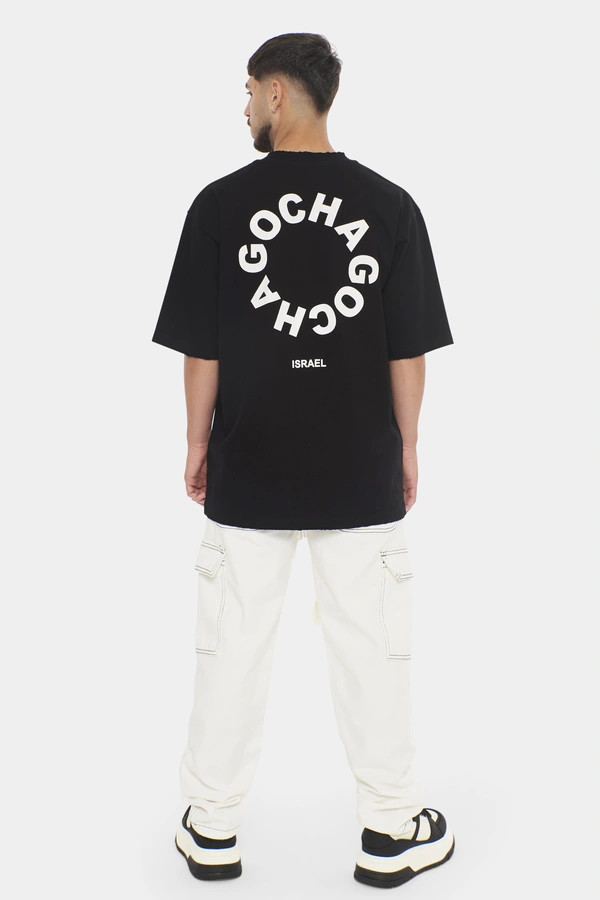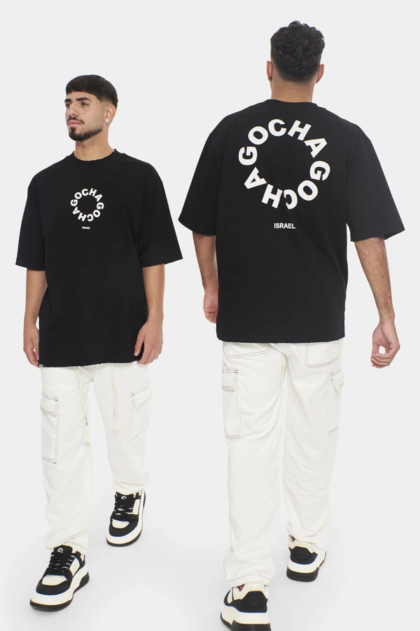 חולצה קצרה אוברסייז GOCHA IL BLACK – סטייל נינוח ואופנתי לגבר. חולצת טי שירט שחורה בעיצוב GOCHA, מושלמת ללוק יומיומי וטרנדי.