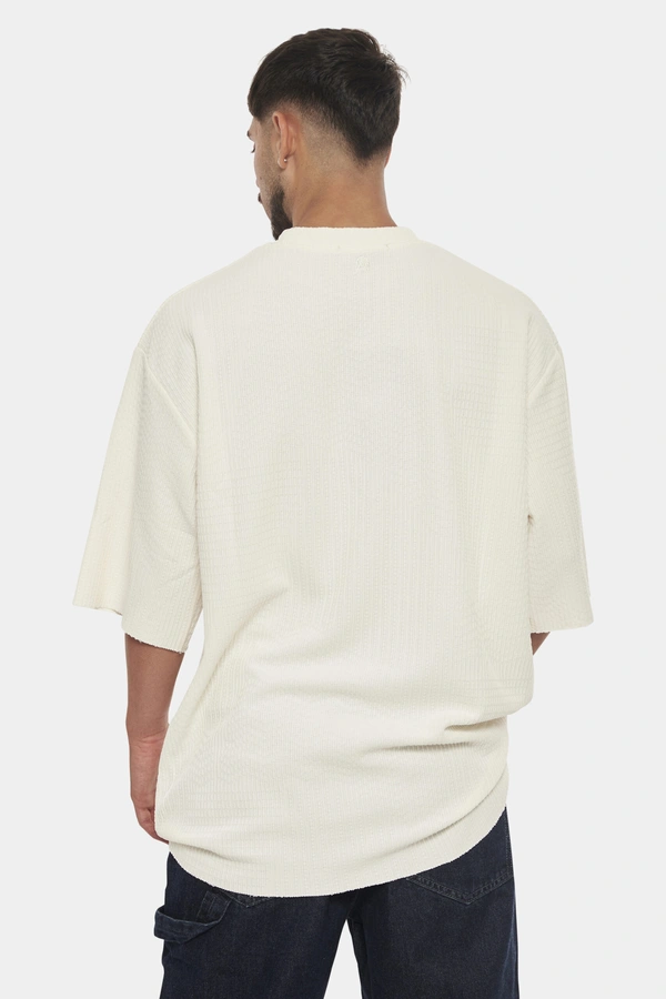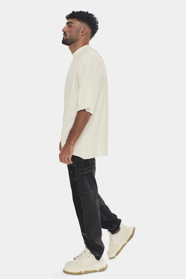 חולצת טי שירט קצרה אוברסייז של GOCHAS STORY, בגוון OFF WHITE נקי וקלאסי. החולצה מעוצבת בגזרה רחבה ונינוחה, המעניקה מראה טרנדי ואופנתי. עשויה מבד איכותי ונעים, המבטיח נוחות לאורך כל היום. חולצה זו היא בחירה מושלמת לגברים המחפשים פריט לבוש אופנתי וקל לשילוב במגוון לוקים. שלב עם גינס או מכנסיים אלגנטיים יותר להשלמת המראה.