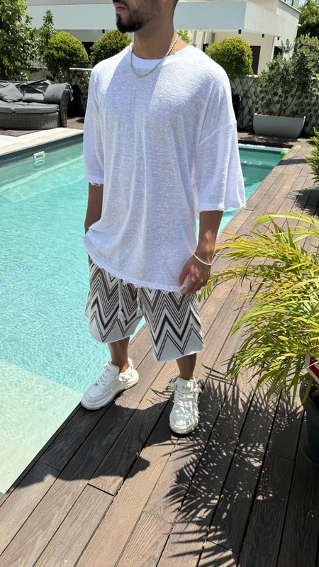 חולצת אוברסייז סלאב פשתן קרע לבנה מבית GOCHA. מראה קיצי ונינוח לגבר, מושלמת לימי הקיץ החמים.