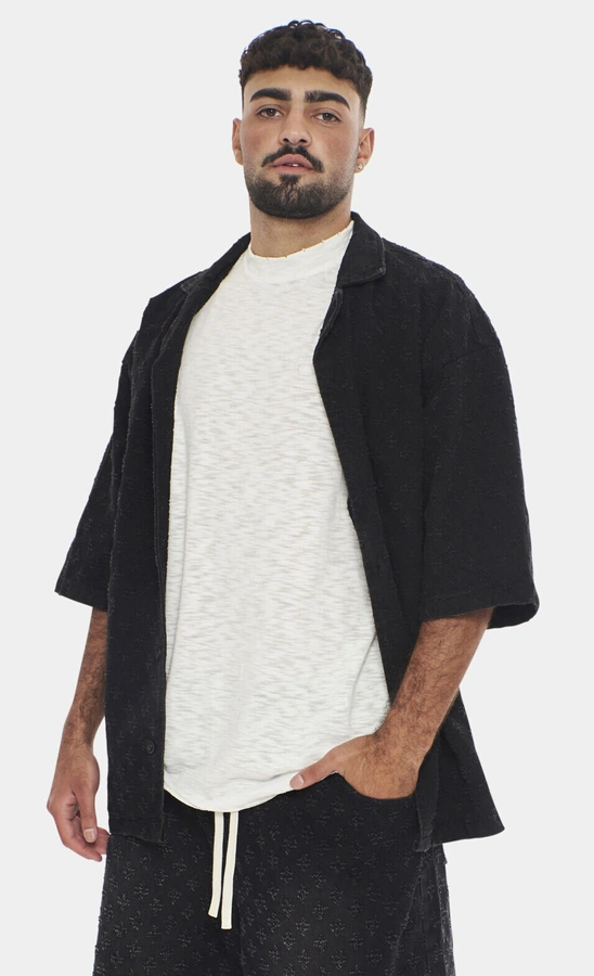 מכופתרת אוברסייז קצרה ספרקל WASHED BLACK לגבר: גקט מעוצב בגזרת אוברסייז טרנדית. עשוי מבד איכותי עם טקסטורת ספרקל עדינה, בגוון שחור שטוף. מכופתרת זו משלבת סגנון עם נוחות, מושלמת למראה יומיומי או ליציאה בערב. הצטרפו לטרנד האופנה עם הסטייל המיוחד של Gocha.