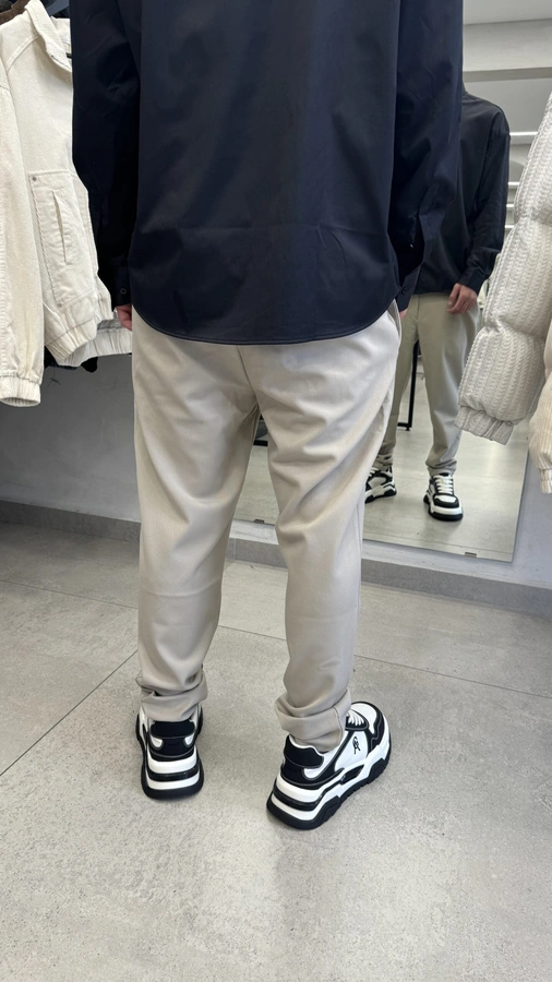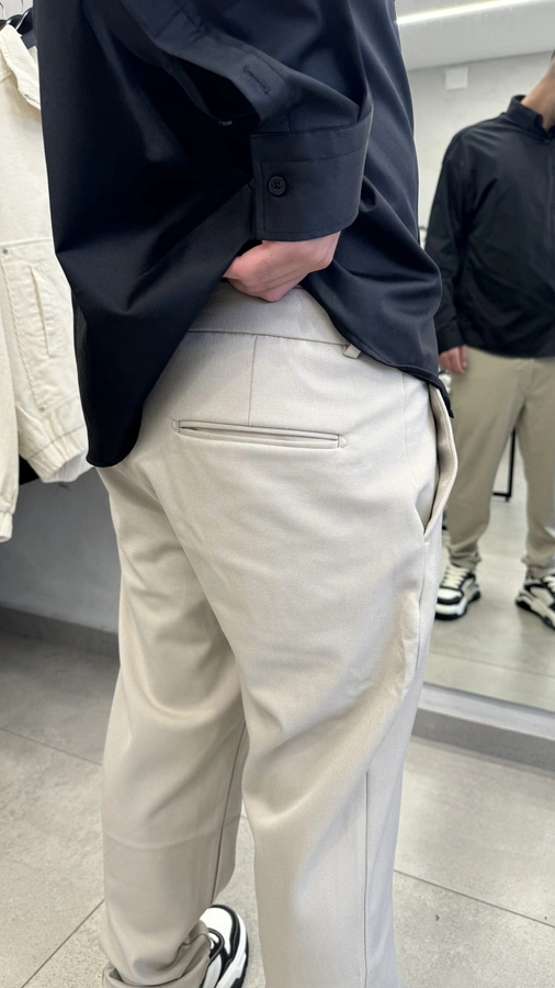 המכנס מתאפיין בצורת קלאסית ושימושית, שניתן לשלב עם נעליים אלגנטיות או נעלי ספורט, making it versatile for both formal and casual occasions.