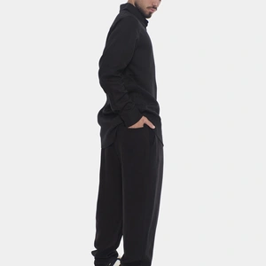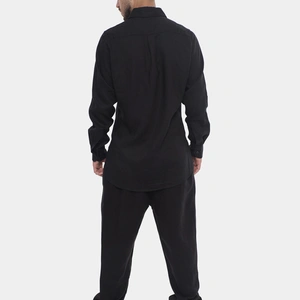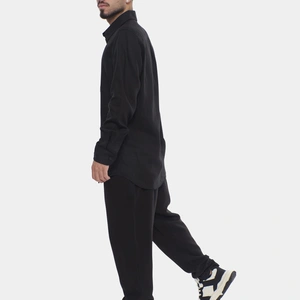מכנסי פשתן ארוכים מדגם LOVE BLACK הם השילוב המושלם בין נוחות מקסימלית לסטייל אורבני בלתי מתפשר. המכנסיים מעוצבים בגזרה רפויה (Relaxed Fit) המעניקה חופש תנועה מלא, ועשויים מבד ארוג קליל ואוורירי בעל טקסטורה עדינה המדמה פשתן איכותי. הצבע השחור הקלאסי בגימור מט מעניק להם מראה מתוחכם שמתאים לכל שעה ביום. הם כוללים מותן אלסטית עם שרוך הידוק חיצוני וכפתור סגירה בחזית להתאמה אישית מדויקת. הגזרה הרחבה והמכפלת הנקייה הופכים אותם לפריט חובה בארון הגברי, אידיאלי למראה סטריטוור יומיומי או לערב נינוח בחוץ. אם אתם מחפשים פריט ורסטילי שישדרג כל הופעה בקלות, זהו המכנס עבורכם.