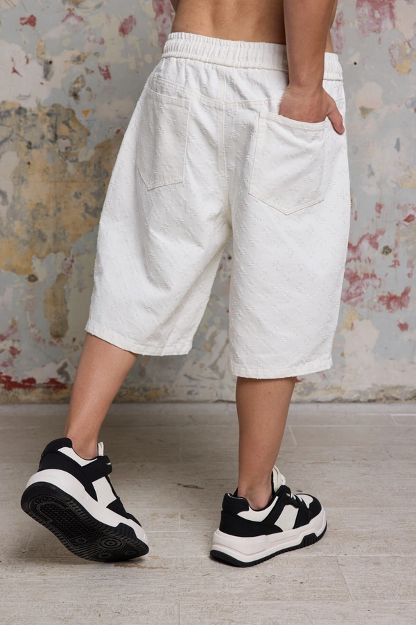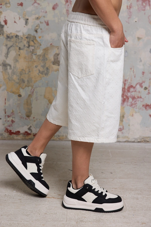 שורט גינס אוברסייז ספרקל WHITE הוא הפריט שיסגור לכם את הפינה של הסטייל הקיצי במינימום מאמץ ומקסימום נוכחות. מדובר במכנסיים קצרים המעוצבים עבור הגבר הישראלי שלא מפחד להעז ובוחר לשלב נוחות של גזרת רחבה עם עיצוב מוקפד ויוצא דופן. הצבע הלבן הנקי מעניק תחושת רעננות, בעוד שטקסטורת הספרקל (Sparkle) הייחודית מוסיפה עומק ויזואלי ומראה יוקרתי שמושך את העין מבלי להשתלט על הלוק.